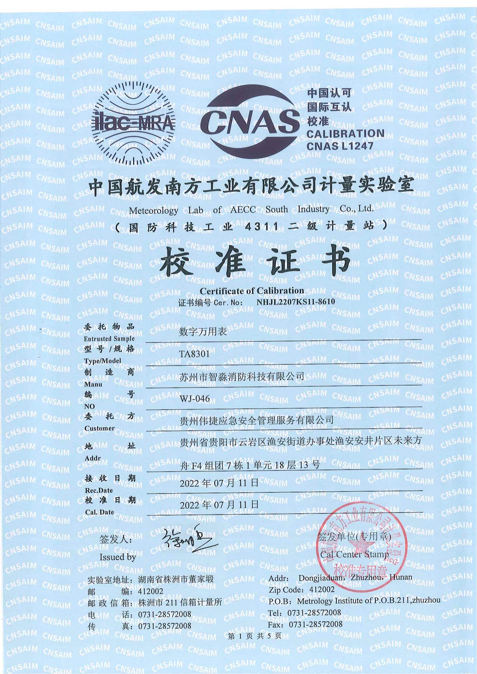 貴陽數字萬用表校準證書報告