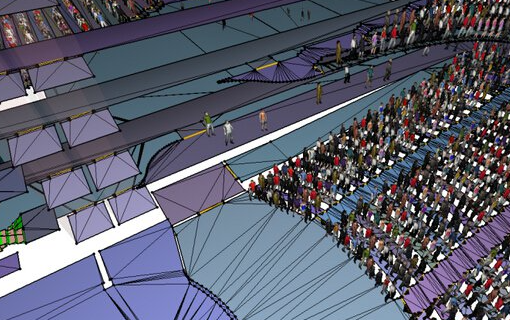 -Pathfinder昆明人員疏散能力模擬分析軟件還專門提供了高性能可視化的3D時間歷程模擬,利用透明化功能來更好地顯示密集人群在樓層中的疏散情況。