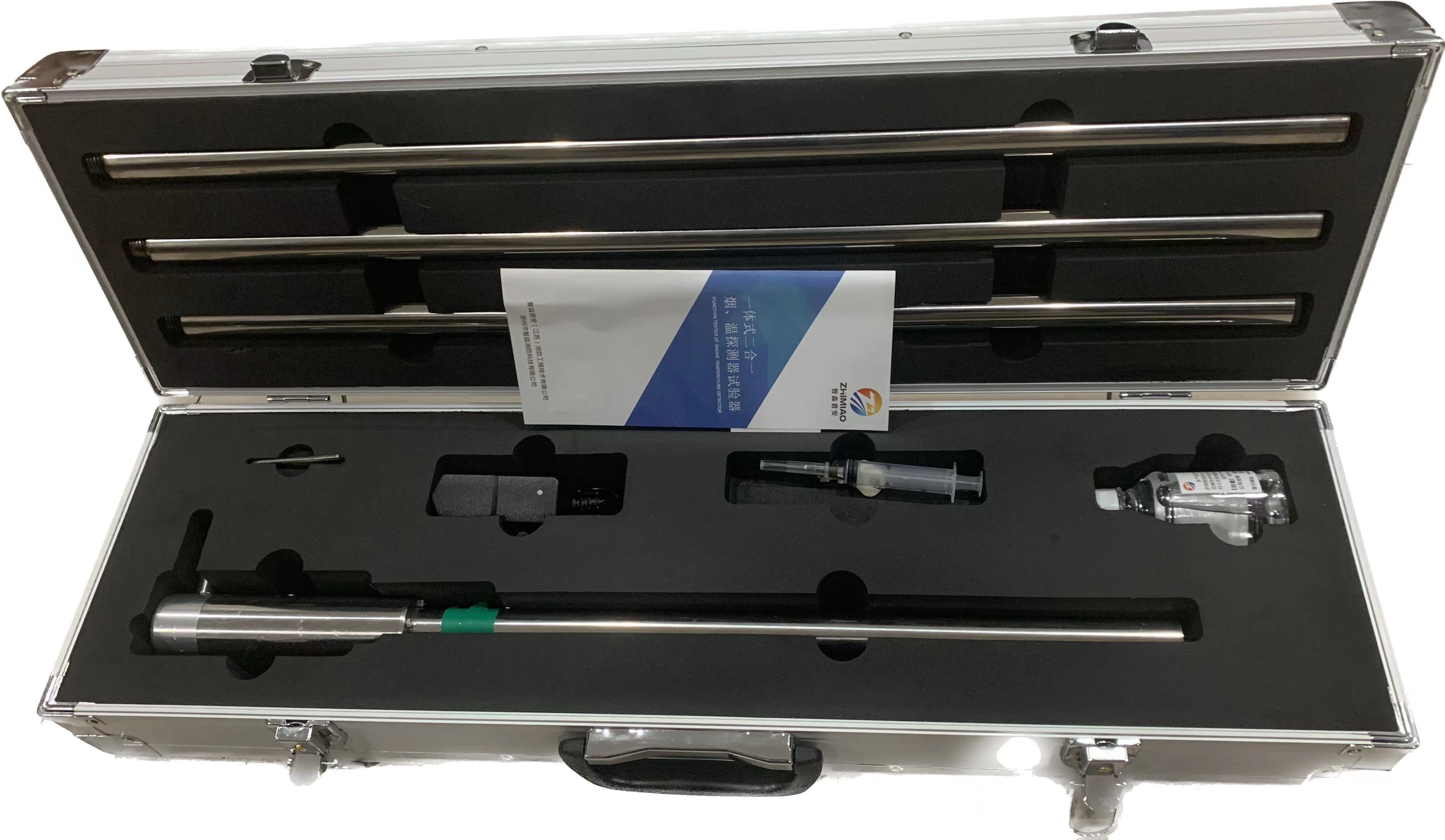一體式二合一消防煙槍,二合一火災探測器功能試驗器,感煙感溫二合一探測器功能試驗器是江蘇智淼消防在優化感煙探測器功能試驗器及感溫探測器功能試驗器的基礎上開發設計的新一代煙溫試驗器,繼續保持特有的不銹鋼設計,鋁合金外包裝,攜帶方便,組裝簡單、操作靈活等特點。