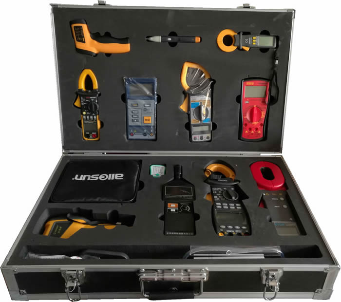配置:1.接地電阻測試儀2.絕緣電阻測量儀3.鉗型電流表4.數字萬用表5.筆式測試儀6.高溫紅外測溫儀7.電源插頭測試儀8.漏電電流表