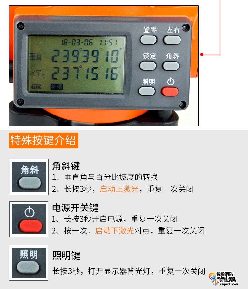 將儀器定平,用望遠鏡瞄準測量目標,用水平度盤和豎直度盤測定水平角和豎直角。按精度分為精密經緯儀和普通經緯儀;按讀數設備可分為光學經緯儀和游標經緯儀;按軸系構造分為復測經緯儀和方向經緯儀。此外,有可自動按編碼穿孔記錄度盤讀數的編碼度盤經緯儀;可連續自動瞄準空中目標的自動跟蹤經緯儀;利用陀螺定向原理迅速獨立測定地面點方位的陀螺經緯儀和激光經緯儀;具有經緯儀、子午儀和天頂儀三種作用的供天文觀測的全能經緯儀;將攝影機與經緯儀結合一起供地面攝影測量用的攝影經緯儀等。